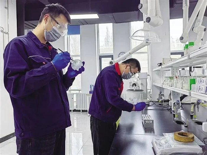 走進皓天科技研發(fā)中心,儼然是走進了一個科學(xué)院所的實驗室。在一樓合成實驗室里,戴著防護鏡的科研人員手里不停晃動著燒瓶,認真觀察正在發(fā)生的化學(xué)反應(yīng),旁邊的幾臺實驗設(shè)備運轉(zhuǎn)如常,進行著分離、濃縮等操作,幾位科研人員坐在電腦前及時記錄、分析試驗中的各項數(shù)據(jù)。就是在這些實驗室里,累計完成100多個原料藥、300多個高級中間體的工藝研發(fā)。