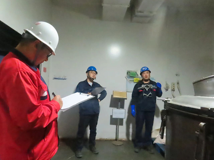 本次大比武設(shè)置了兩個(gè)關(guān)鍵環(huán)節(jié):萃取分液與離心機(jī)操作,以及風(fēng)險(xiǎn)點(diǎn)辨識與應(yīng)急處置。在萃取分液與離心機(jī)操作環(huán)節(jié)中,員工們嚴(yán)格遵循操作規(guī)程,展現(xiàn)了精湛的技術(shù)和嚴(yán)謹(jǐn)?shù)膽B(tài)度。而在風(fēng)險(xiǎn)點(diǎn)辨識及應(yīng)急處置環(huán)節(jié),員工們不僅要辨別全流程操作的安全風(fēng)險(xiǎn),還要就如何迅速有效地進(jìn)行應(yīng)急處置進(jìn)行闡述。裁判員的隨機(jī)提問考驗(yàn)了參賽者的應(yīng)變能力和安全知識儲備,面對關(guān)于離心機(jī)操作中可能出現(xiàn)的異常工況等,參賽員工們應(yīng)答自如,顯示出扎實(shí)的安全操作基礎(chǔ)。
